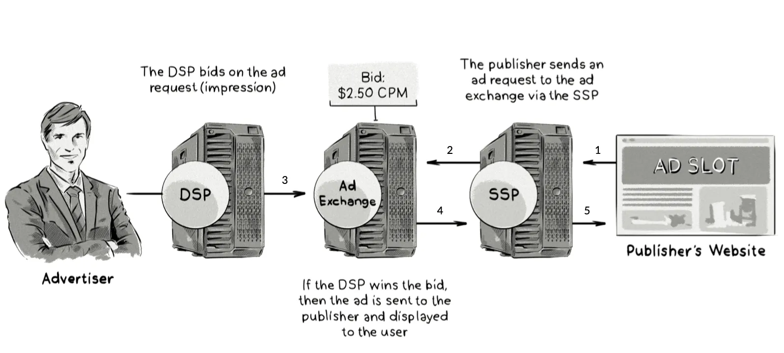 - Optimizations: The advertiser can use the data from the DSP and SSP to adjust the targeting, ad creative, or bidding strategy, to further optimize their campaign.