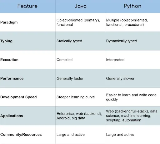 Ultimately, the best choice depends on your project’s needs. Java tackles complex, high-performance tasks, while Python excels in getting things done quickly and clearly, especially when data is involved.