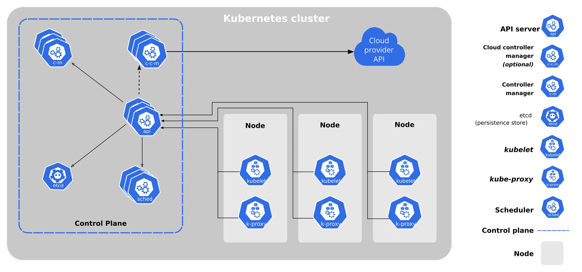 With Kubernetes, you can manage your applications across a distributed network of machines (Kubernetes clusters) – each machine acting as a node (nodes). Kubernetes empowers you to scale your containerized workloads (workloads) up or down with a simple command. Additionally, Kubernetes’ self-healing capabilities automatically restart failed containers and replace unhealthy ones, keeping your applications highly available even if individual nodes experience problems.